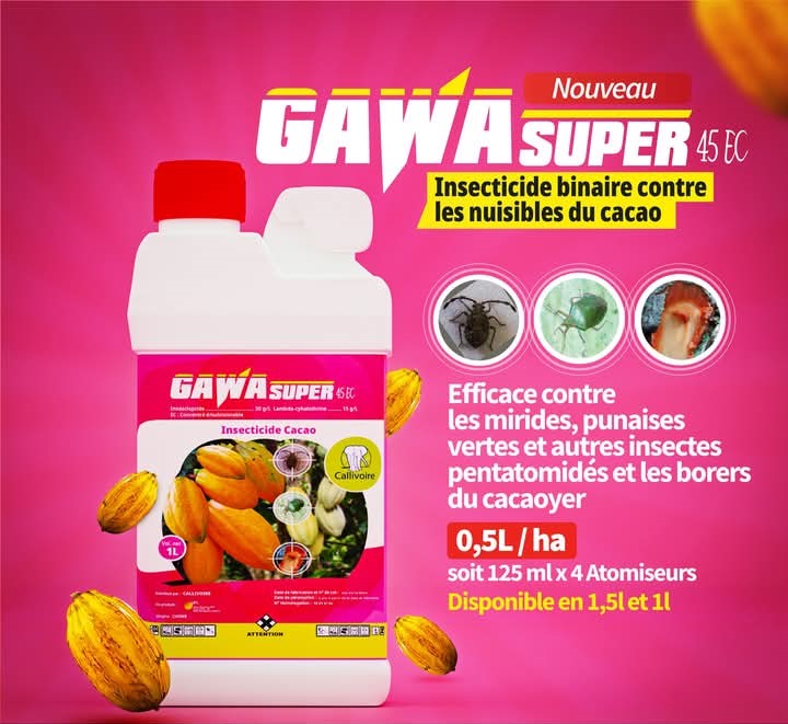 GAWA SUPER 45 EC est un insecticide efficace dans la lutte contre les insectes ravageurs du cacaoyer.