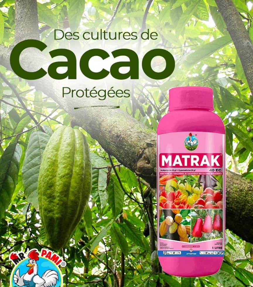MATRAK 40 EC est un insecticide très efficace contre les insectes ravageurs de l’anacardier, du cacaoyer et des cultures maraichères.