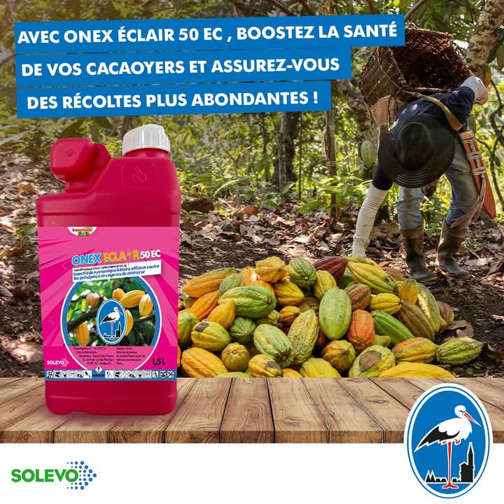 ONEX ECLAIR 50 EC est un insecticide systémique binaire efficace contre les principaux insectes ravageurs dans la culture du cacao.