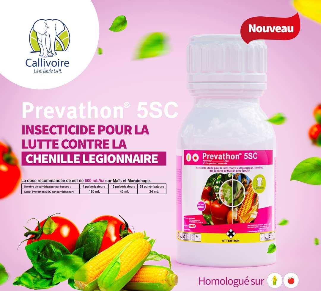 PREVATHON 5 SC est un insecticide utilisé pour la lutte contre les lépidoptères (chenilles légionnaires) des cultures de maïs et de tomate.