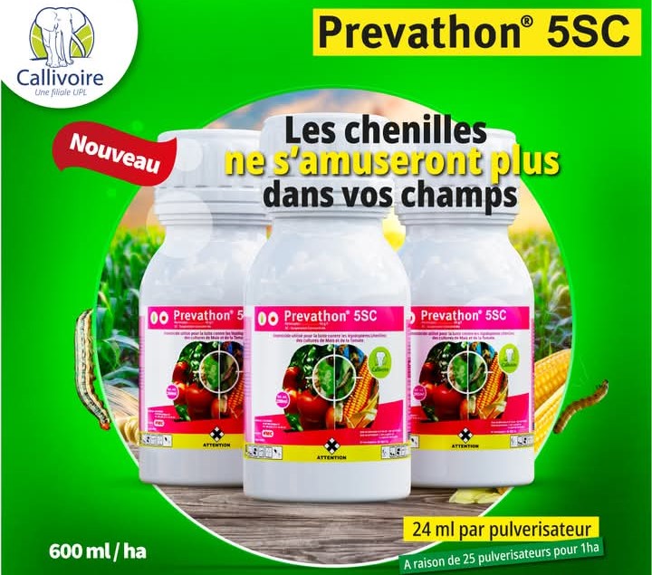 PREVATHON 5 SC est un insecticide utilisé pour la lutte contre les lépidoptères (chenilles légionnaires) des cultures de maïs et de tomate.
