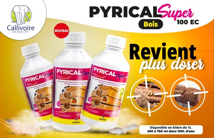 PYRICAL SUPER 100 EC est un insecticide efficace pour la protection totale du bois contre les termites. Il est aussi utilisé pour le traitement contre les principaux insectes et autres nuisibles du sol.