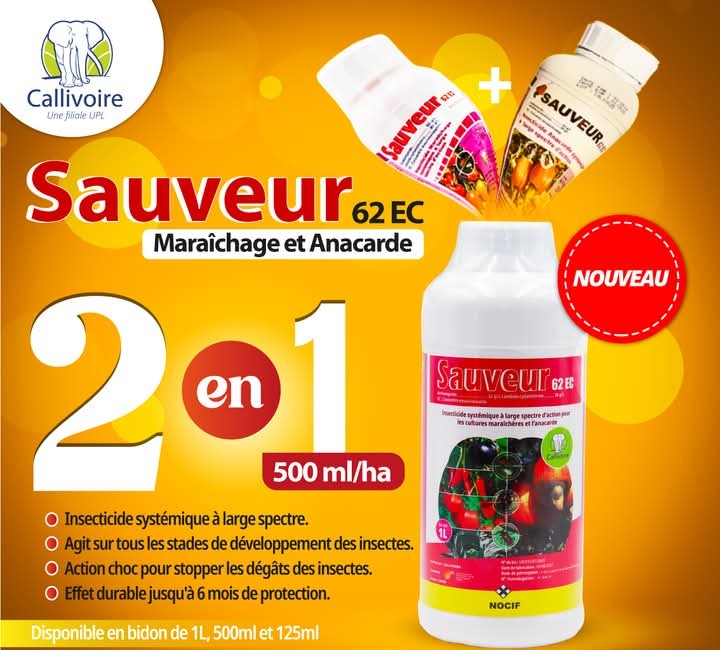 SAUVEUR 62 EC est un insecticide systémique à large spectre d’action pour les cultures maraichères et l’anacarde.