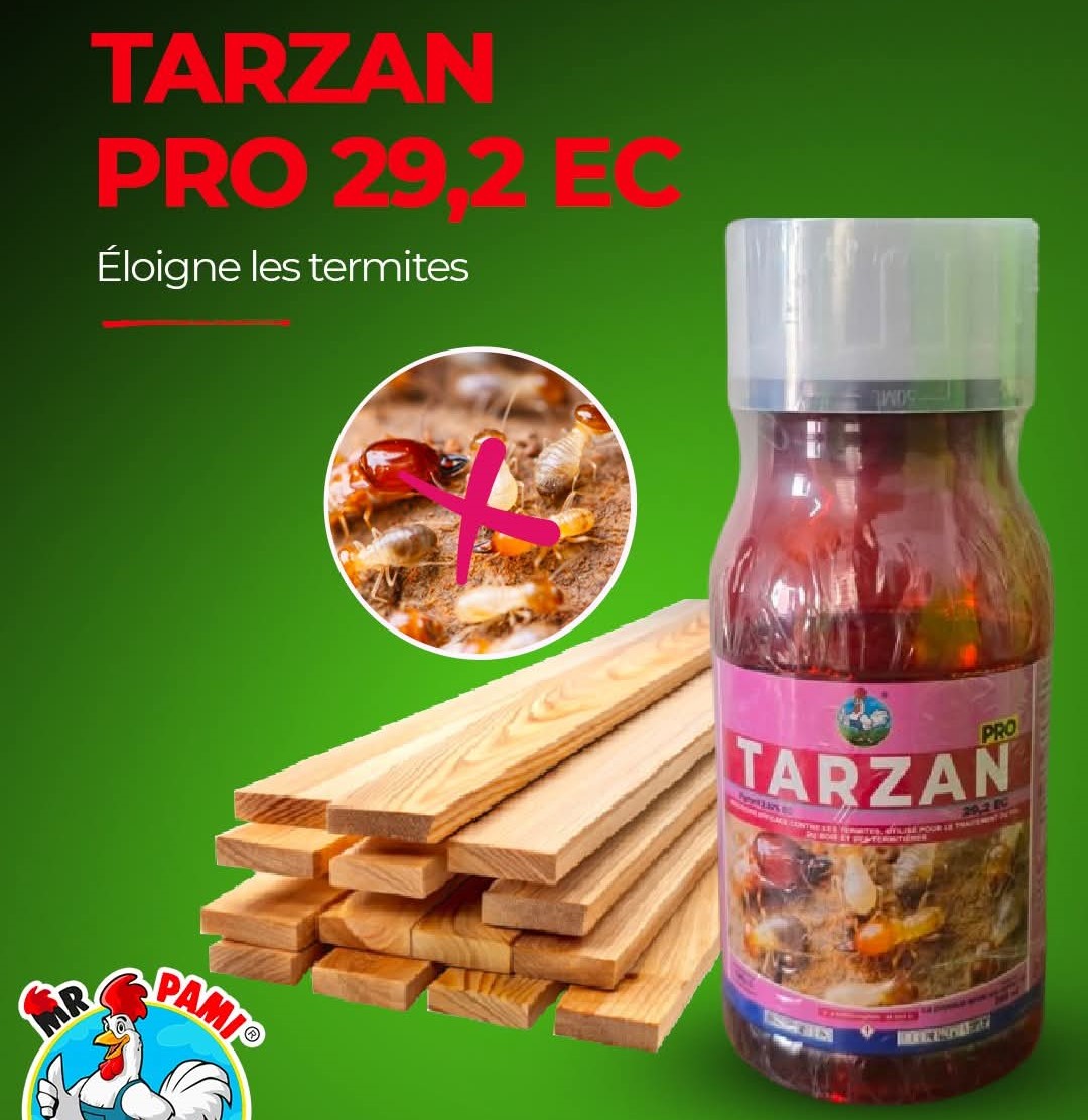 TARZAN PRO 29,2 EC est un insecticide efficace pour l’élimination et la protection des planches de bois et des cultures contre les termites et autres insectes nuisibles du sol. Il veille sur le bois et les récoltes.