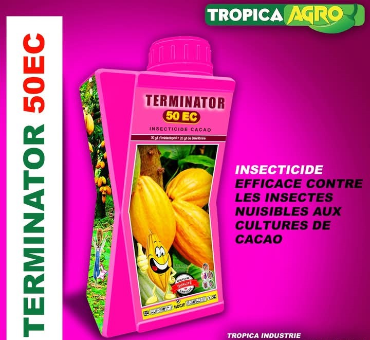 TERMINATOR 50 EC est un insecticide systémique de cacao à large spectre appartenant à la famille chimique des chloronicotimiles. Il agit à titre préventif ou curatif pour une bonne production du cacao.
