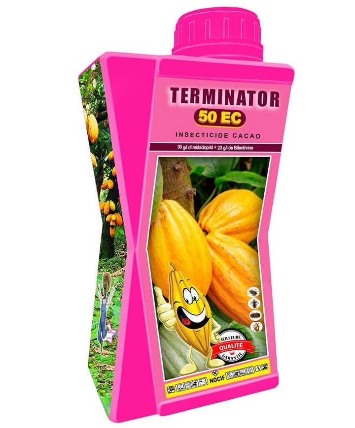 TERMINATOR 50 EC est un insecticide systémique de cacao à large spectre appartenant à la famille chimique des chloronicotimiles. Il agit à titre préventif ou curatif pour une bonne production du cacao.