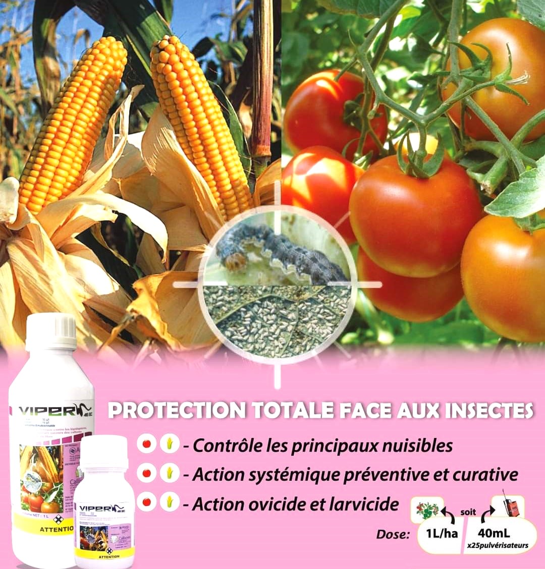 VIPER 46 EC est un insecticide systémique contre les lépidoptères, les insectes piqueurs suceurs des cultures maraichères et du maïs.