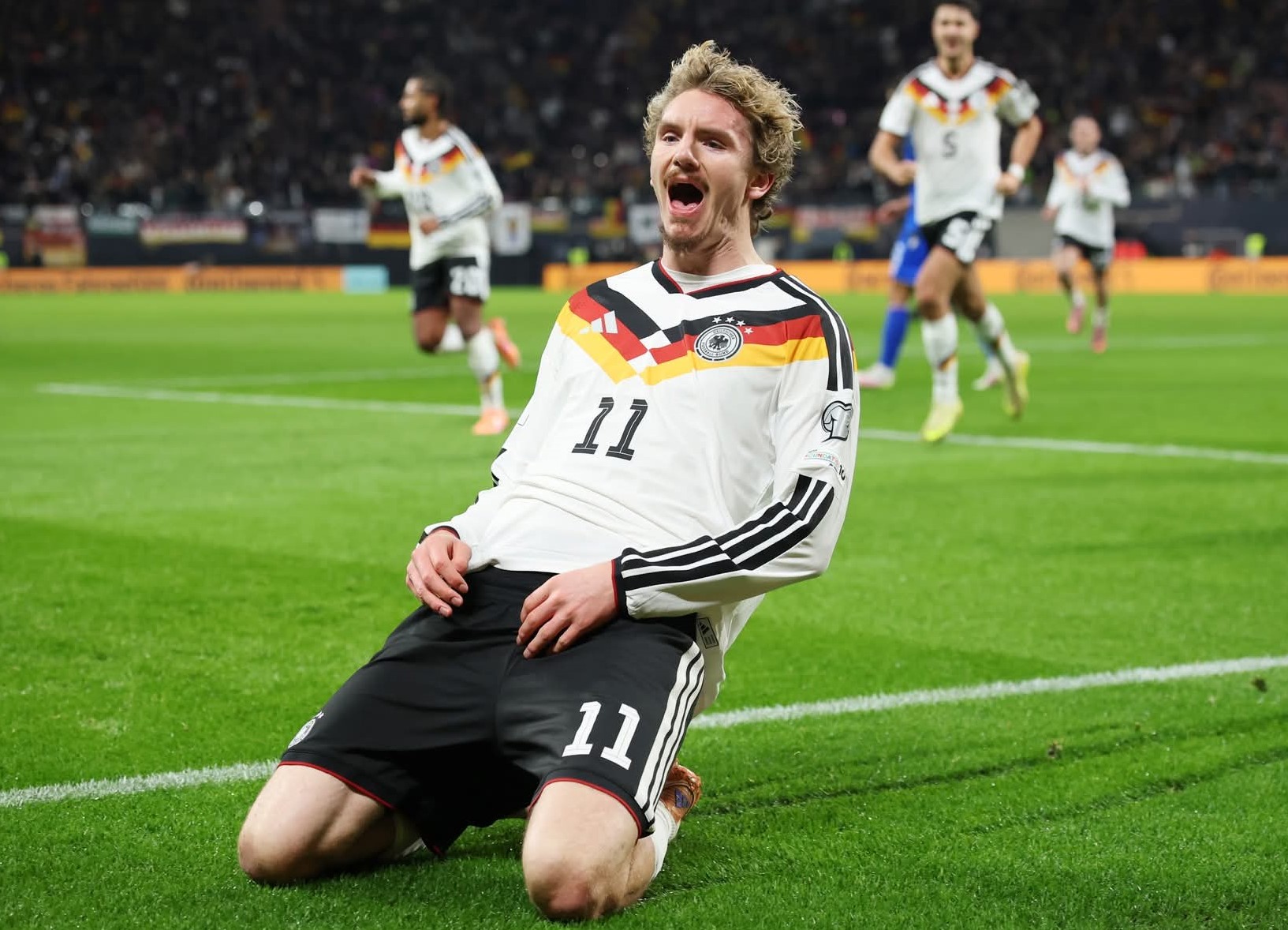- Ecusson de la Mannschaft affiché sur la gauche de la poitrine et le logo Adidas brodés à droite.