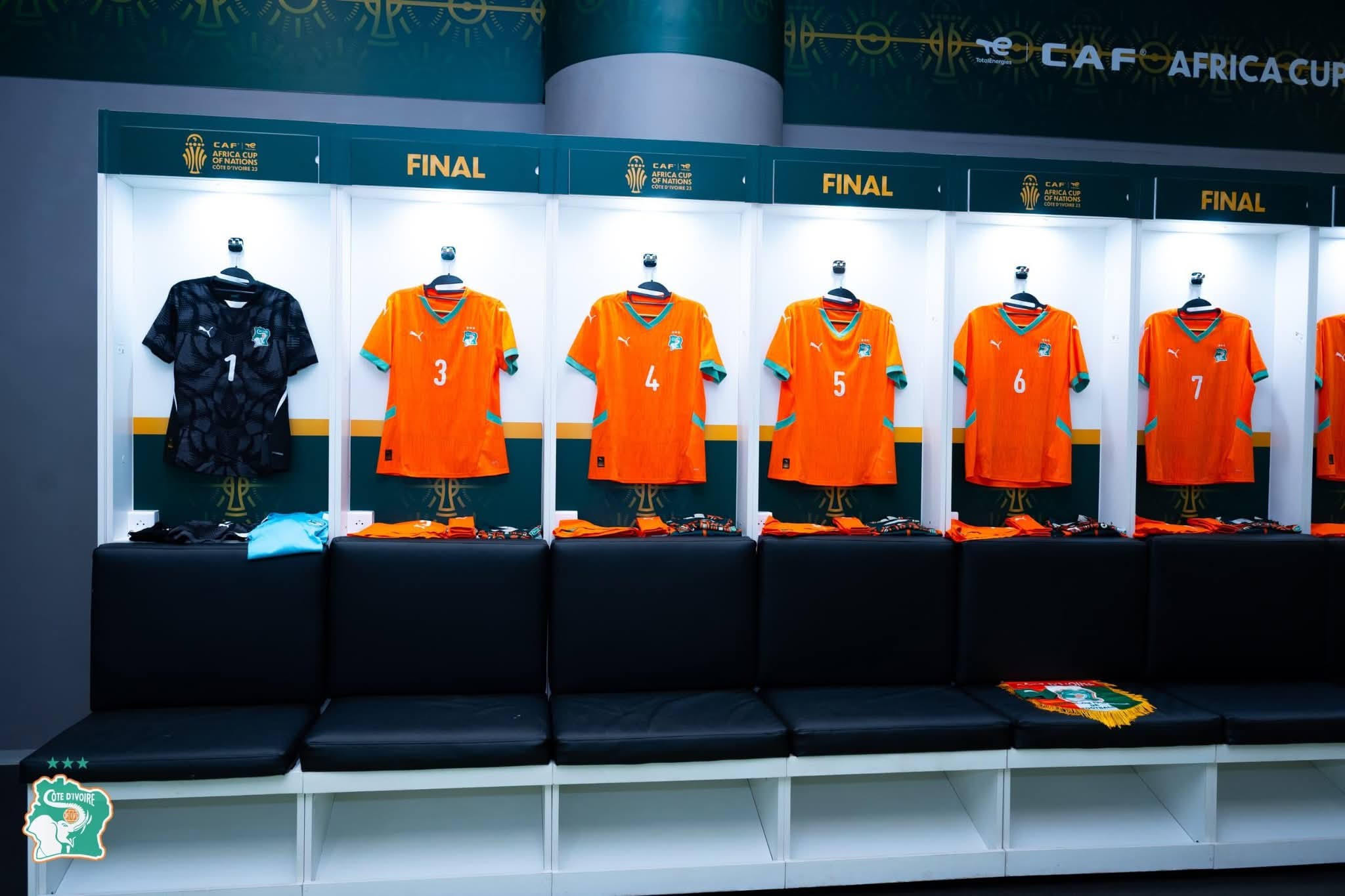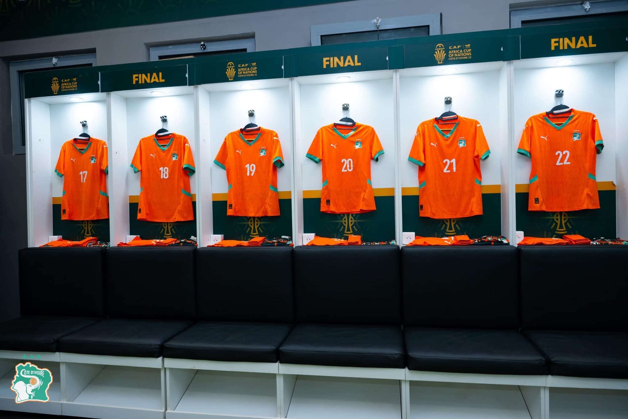 • Le logo de la Fédération Ivoirienne de Football (FIF) est visible sur la poitrine gauche du maillot, tandis que le logo de l’équipementier PUMA est présent sur la droite