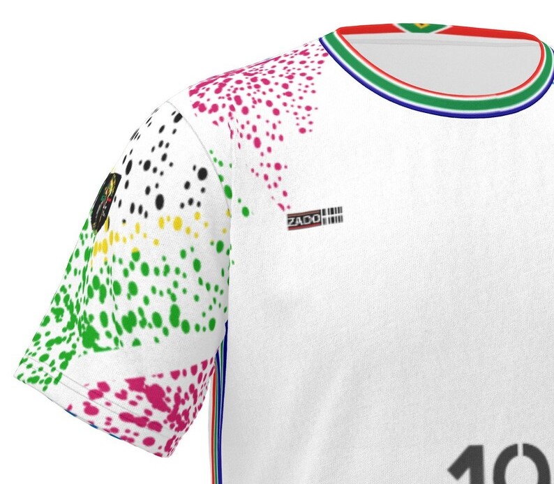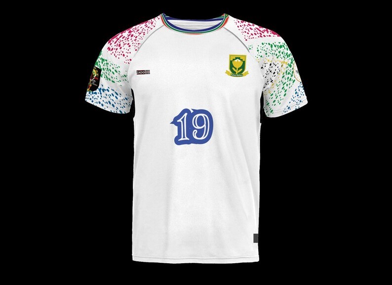 Le maillot de football Extérieur AFRIQUE DU SUD est fait en polyester pour être le plus léger à porter. Il est entièrement blanc avec des motifs bleus pour apporter du dynamisme à votre tenue. Les manches et le col sont entièrement bleus. Le badge de l’Afrique du Sud Football est positionné sur la poitrine gauche et brodé ADIDAS brodé.
