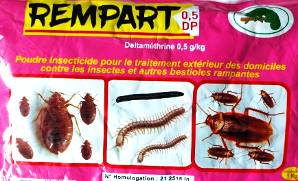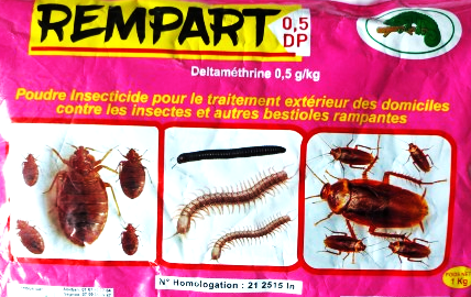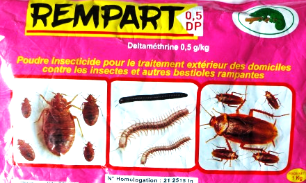 REMPART 0,5 DP est une poudre insecticide destiné au traitement extérieur des domiciles contre les insectes et autres bestioles rampantes (cafards, puces, punaises, etc.)