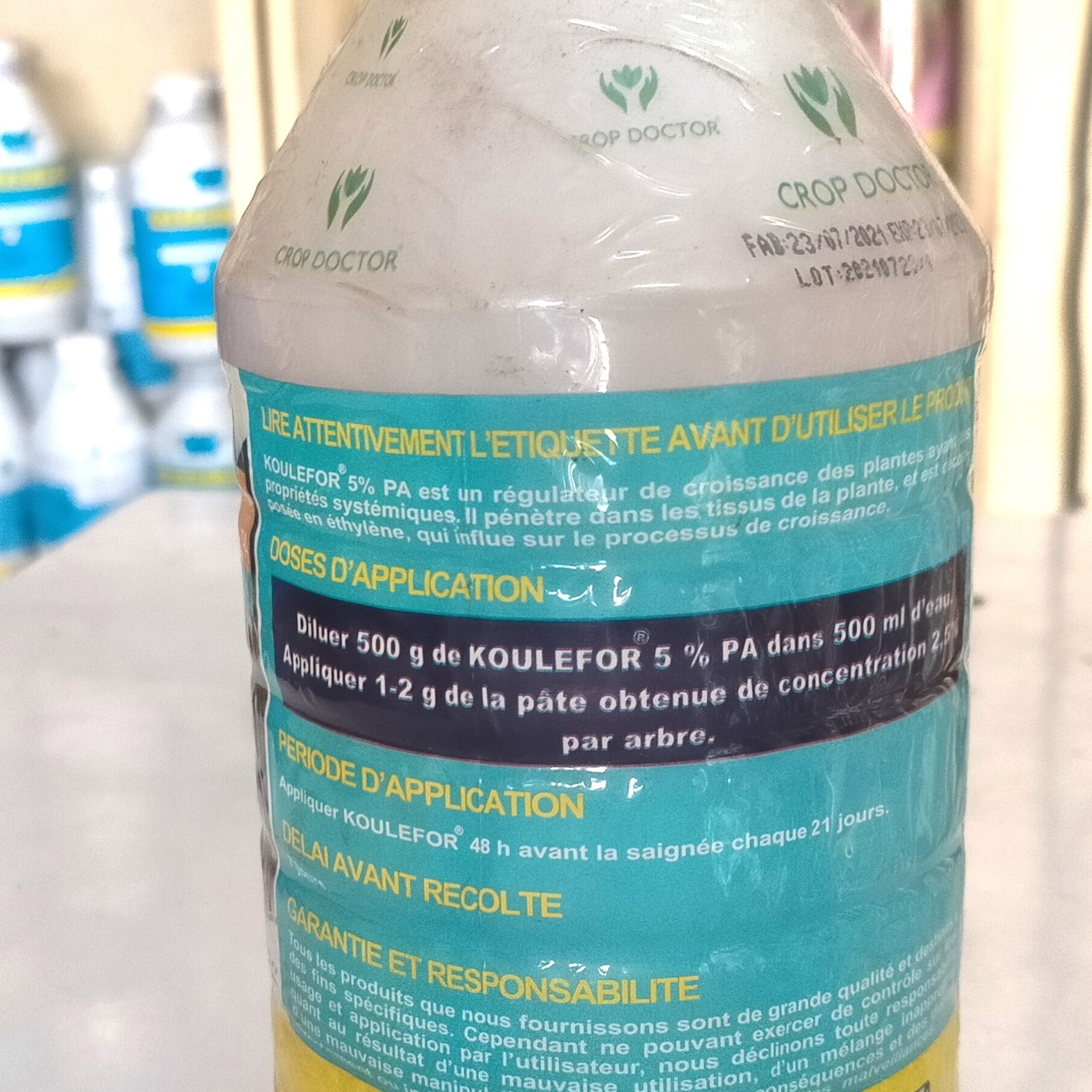 Diluer 500 gr de KOULEFOR 5% PA dans 500 ml d’eau