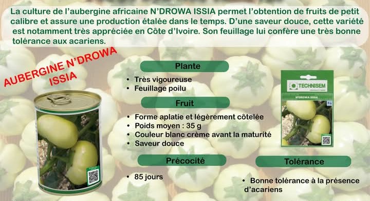 N’DROWA ISSIA est une variété de semence permettant l’obtention de fruits de petit calibre et assure une productivité étalée dans le temps. D’une saveur douce, cette variété est notamment très appréciée en Côte d’Ivoire. Son feuillage lui confère une très bonne tolérance aux acariens.
