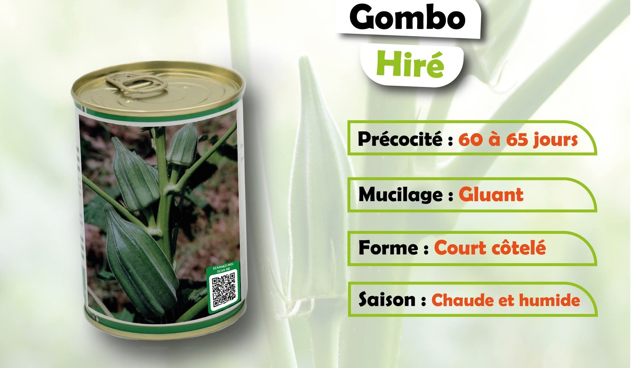 Le GOMBO HEREBA est une nouvelle variété de semence de haute qualité présentant un fort potentiel de production. Elle est très résistante et adaptée en zone tropicale chaud et humide.