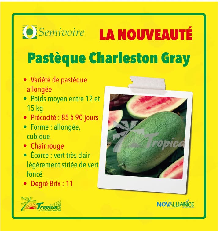 CHARLESTON GRAY est une variété de pastèque vigoureuse, productive et adaptée au climat tropical chaud et humide. Les rendements sont très élevés. CHARLESTON GRAY est excellente pour la maison ou le marché.