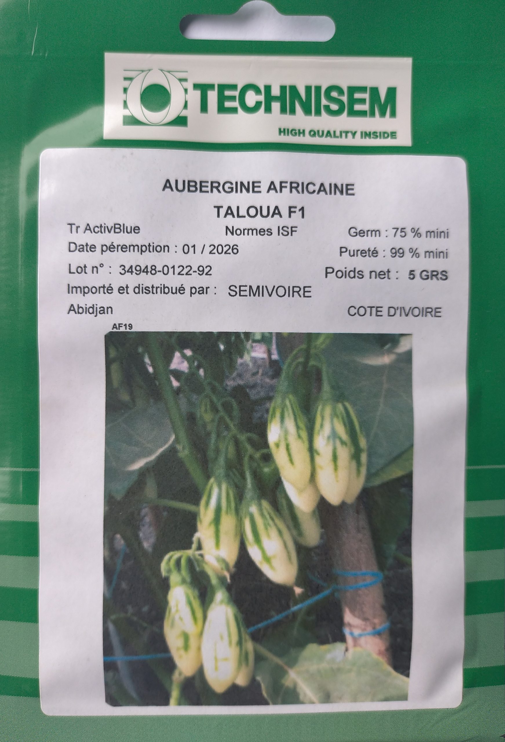 Semence hybride d’AUBERGINE AFRICAINE TALOUA F1 5 gr