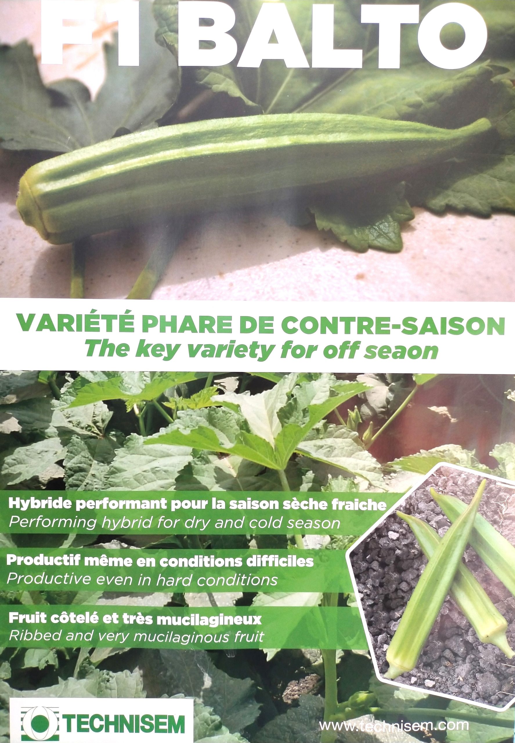La semence de GOMBO F1 BALTO est une variété phare de contre-saison à haut rendement, bien adaptées aux températures élevées. C’est un hybride performant pour la saison sèche fraiche et très résistant aux maladies et ravageurs, apprécié sur le marché des légumes et fruits.