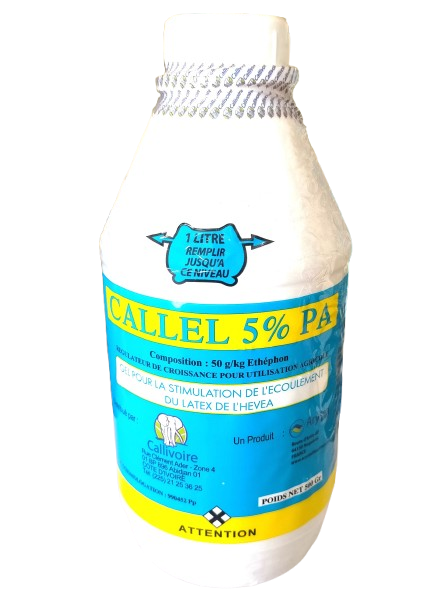 CALLEL 5% PA est un régulateur de croissance qui stimule la sécrétion du latex au niveau du panneau de saignée de l’hévéa. Doté de propriétés systémiques, il pénètre dans les tissus de la plante et se décompose en éthylène. Ce dernier stimule le processus de croissance en provoquant l’écoulement du latex au niveau des cellules productrices.