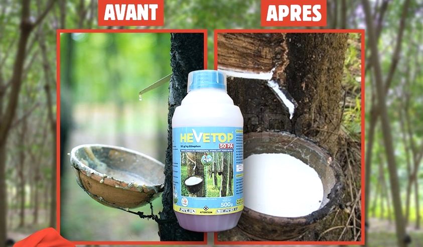 HEVETOP 50 PA est un puissant stimulant de l’écoulement du latex des hévéas.