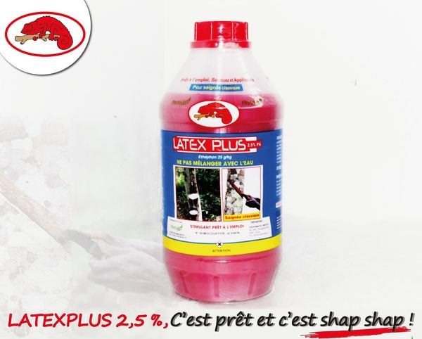 LATEX PLUS 2.5% PA (CAMELEON ROUGE) est un stimulant à 2,5% d’éthéphon destiné à la stimulation des hévéas en saignée remontante ou inversée.