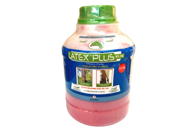 LATEX PLUS 5% PA est un régulateur de croissance destiné à la stimulation de l’écoulement du latex des hévéas après la saignée.
